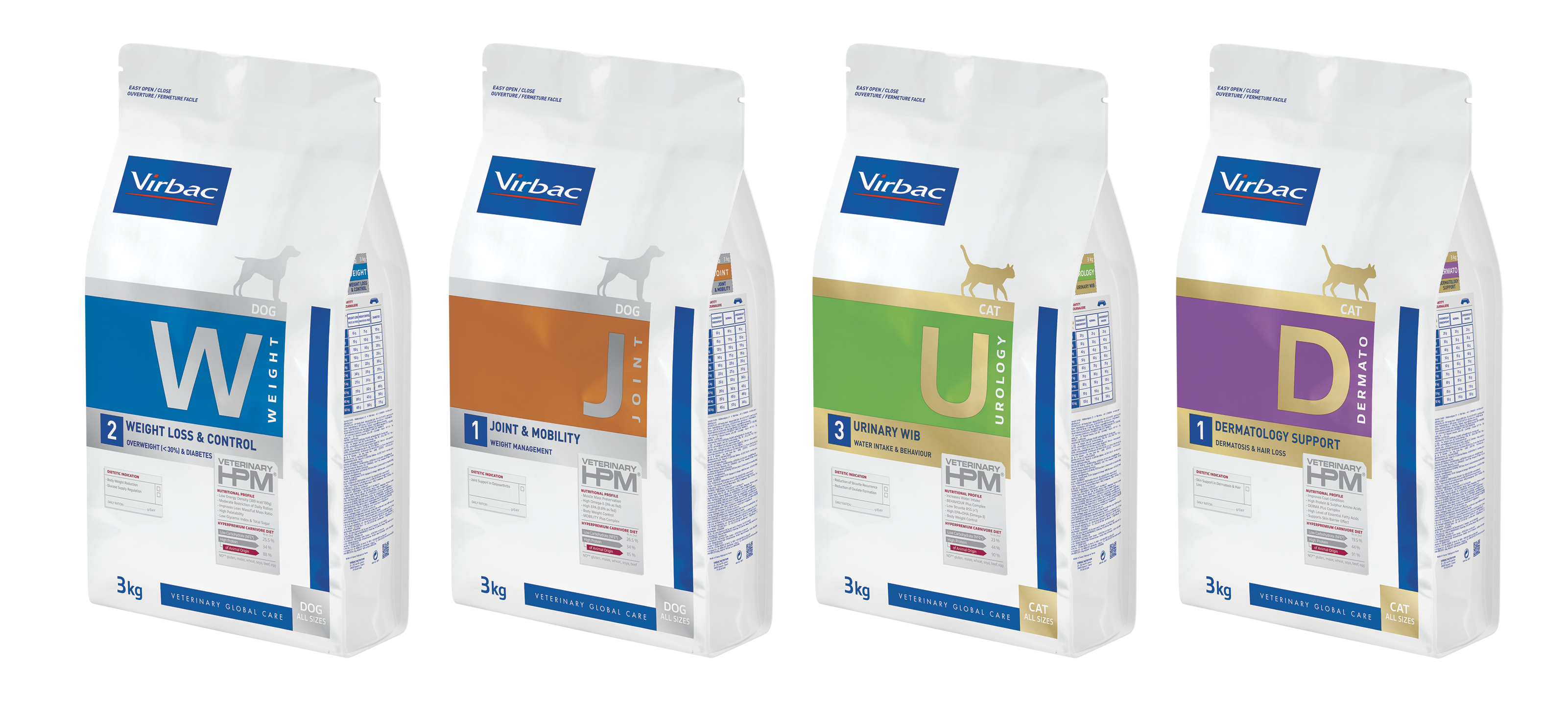 Pamatojoties uz fizioloģiskās barības panākumiem, Veterinary HPM® saime paplašinās: pilnvērtīgs diētisko barību klāsts tagad ļauj mums apmierināt uztura vajadzības, kas saistītas ar konkrētām veselības problēmām, vienlaikus respektējot prasību par gaļēdāju vajadzībām. Liels sasniegums viņu veselībai!